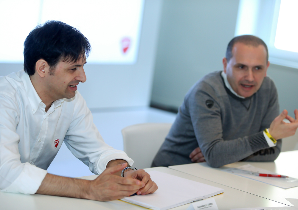Da oggi esiste già un forte rapporto con Audi e si sa che Walter de Silva non è estraneo al centro stile bolognese. «C'è interesse, collaborazione e confronto con i centri di advanced design del gruppo sparsi per il mondo. Personalmente – prosegue Fabbro - interessa avere un loro parere, a Bologna tutti i designer sono motociclisti e sono innamorati dall'oggetto moto che guidano, mentre la visione dei designer auto è più distaccata. Loro la vedono la moto come una particolare scultura su due ruote invece che su quattro. Sono finalizzati allo stile puro, allo studio delle superfici. Fra l'altro per noi il tempo che dedichiamo a risolvere i problemi produttivi, interni o con i fornitori, vale almeno il 60% del tempo dedicato all'intero progetto».