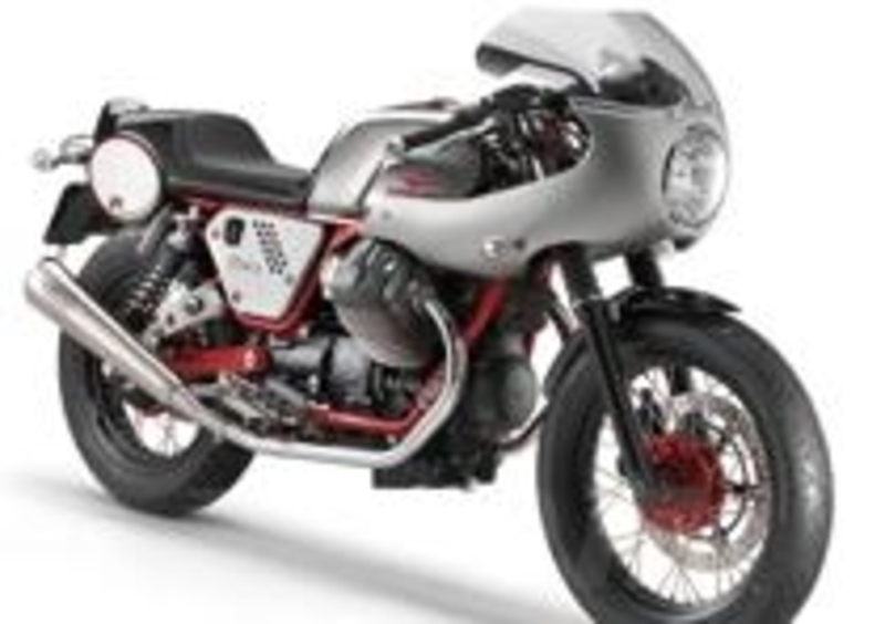 Le forme dei componenti del kit richiamano alla memoria proprio le soluzioni aerodinamiche tipiche della racer anni ’70. Il kit si compone di un cupolino di forma tondeggiante che ospita il proiettore singolo della V7, caratterizzato dai profili laterali di raccordo alla zona del serbatoio e da una sella cheingloba il codone