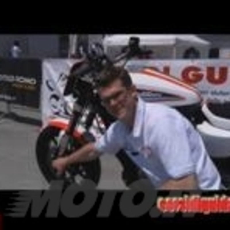 Predica bene, ma razzola così, così. Tuta e casco sembrano passati sotto a una ruspa. Inguardabili. Tutto questo dopo aver fatto una testa così ai corsisti sull’importanza dell’abbigliamento “fresco e in ordine”. Lo stivale destro è ridotto a una spadrillas, perché la sua Ducati non ha più la paratia sui tubi di scarico; le cerniera della tuta è stata sostituita da una fascetta in plastica; la visiera del casco sembra l’abbiano usata i gatti per giocare. Competente, veloce, ma indisciplinato.