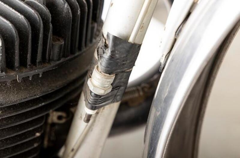 L'esemplare della 400 in vendita è uno di quelli appartenenti al garage di McQueen ed è passato di mano almeno altre 3 volte. La prima nel 1984 in un'asta a Las Vegas e successivamente ha fatto felici altri due proprietari, giunge adesso all'asta di Bonhams in condizioni molto buone data l'età e nello stesso stato in cui Steve l'aveva guidata l'ultima volta. Compresa la candela di ricambio (evidentemente il 400 a due tempi non era gentile con le candele...) fissata con del nastro a una delle culle del telaio.