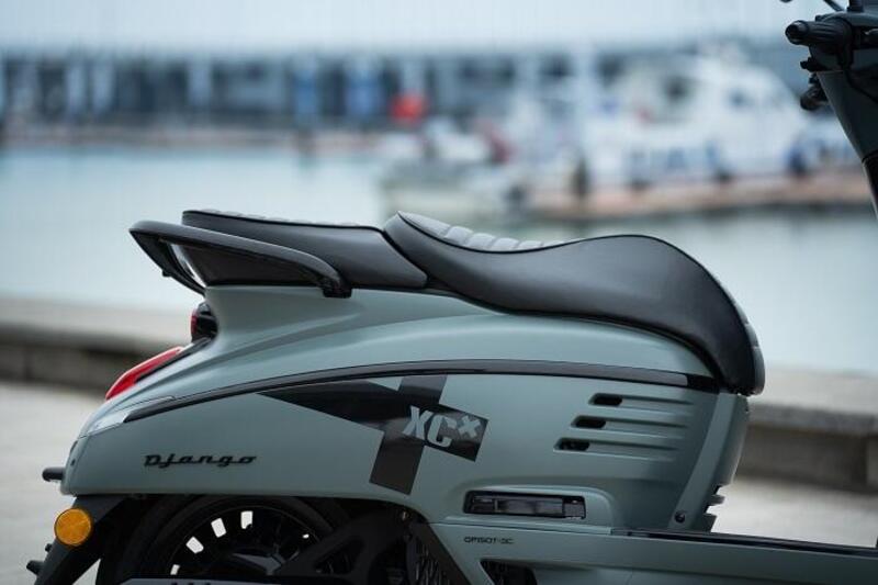 Il Django fin da subito ha puntato sull'originalità delle linee e il raffinato design e con questa nuova colorazione conferma una ricerca identitaria fuori dagli schemi. La vernice a metà strada tra il verde oliva e il grigio si abbina perfettamente con il nero a contrasto. La tonalità scelta richiama vagamente il verde utilizzato nei veicoli militari, ma è più moderno e metropolitano.