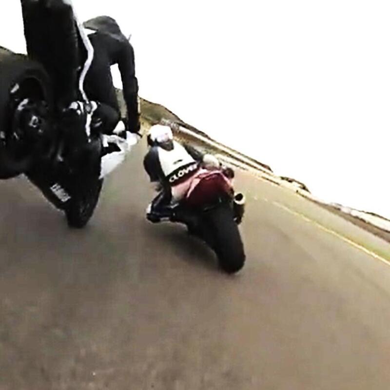 Ebbene, dopo la manovra scellerata, al motociclista va il sangue al cervello, non ci vede più e studia la vendetta.
