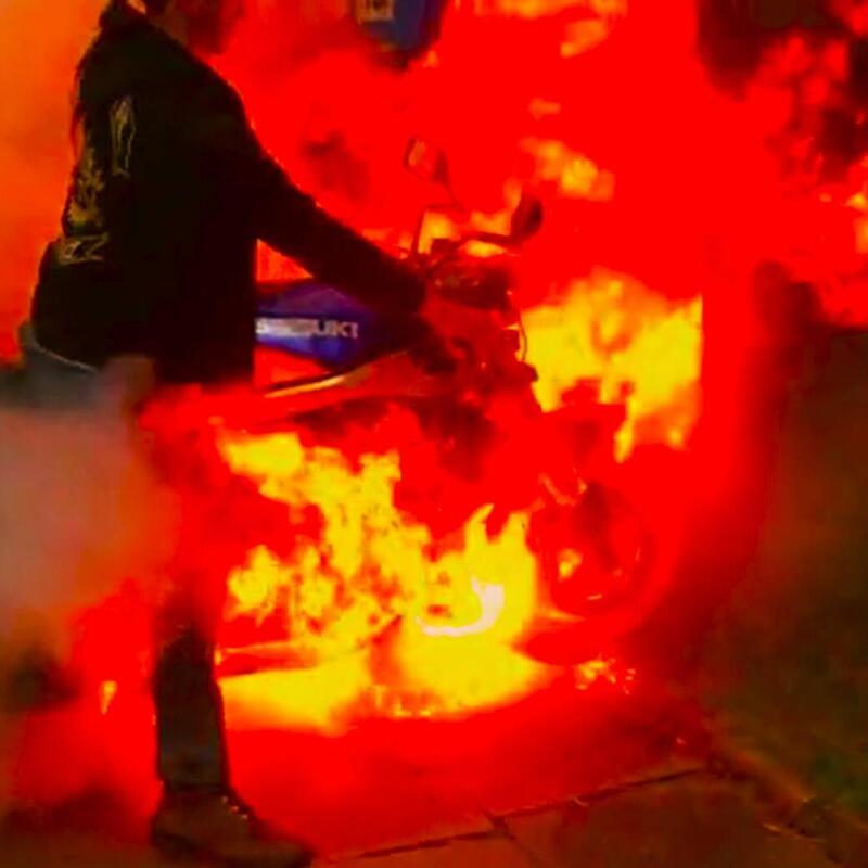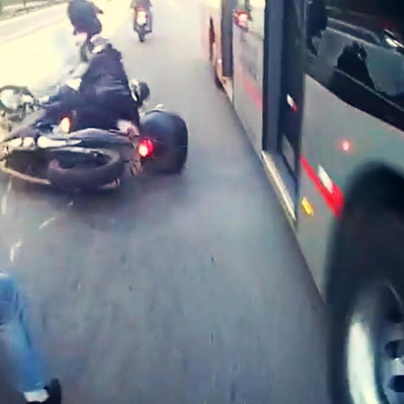 Danno da 100-200 euro, o dollari, fate voi, ma comunque danno è. La fuga nel traffico del motociclista è per assicurarsi l'impunità!