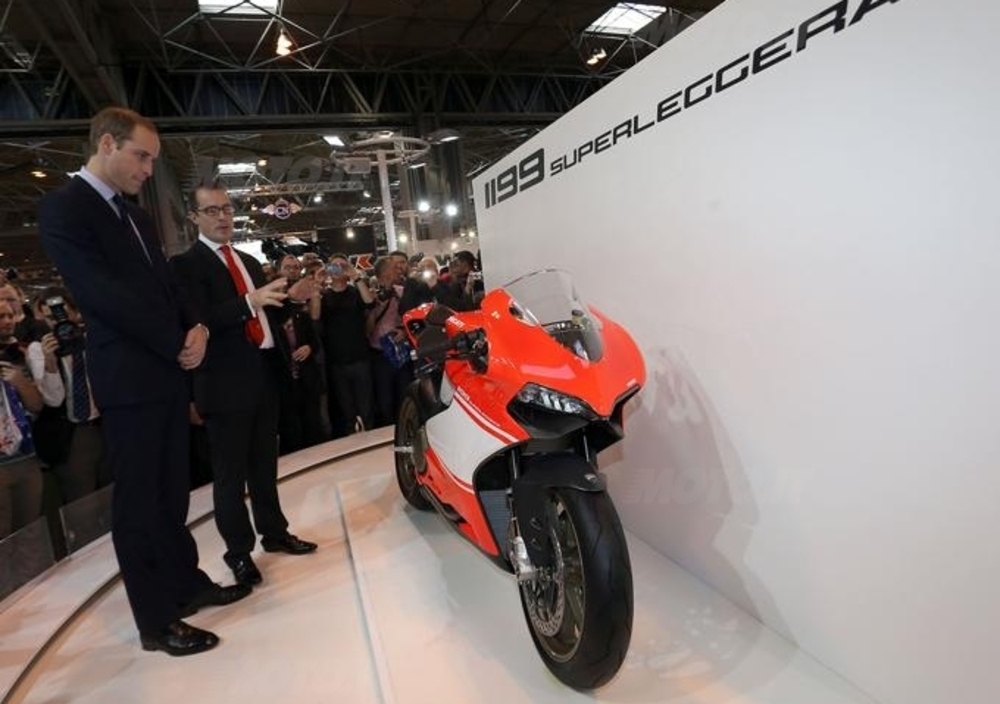 Il Duca di Cambridge ha voluto anche vedere da vicino la nuova Ducati 1199 Superleggera, al suo debutto nel Regno Unito proprio durante il salone.