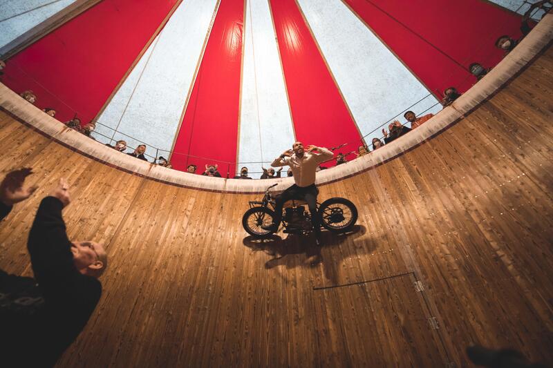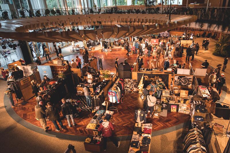 Nel mondo degli accessori espositori come Bad & Bold, SA1NT o Blundstone si uniscono allo spirito heritage formando General Store, mentre motociclisti acrobati di Donald Ganslmeier sfidando la gravità del muro della morte.
