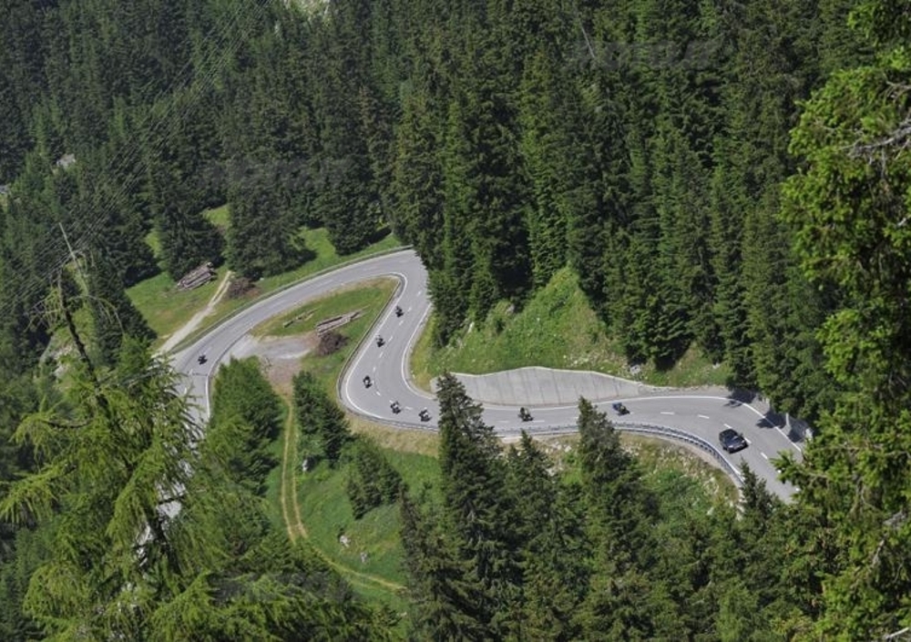 La nostra R 1200 GS Adventure corre veloce (ma occhio ai limiti, la polizia svizzera non scherza!), specchiandosi nei quattro laghi che hanno reso questa vallata alpina una delle mete turistiche più ambite al mondo.