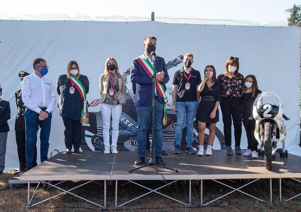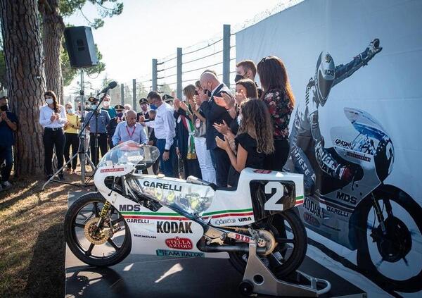 Ma il momento certamente più toccante è stata l’intitolazione a Fausto Gresini della Variante Alta, che ora si chiama Curva Gresini. Alla presenza del Presidente della Regione Emilia-Romagna, Stefano Bonaccini, del Sindaco di Imola, Marco Panieri, dell’Assessore all’Autodromo, Elena Penazzi, del Direttore dell’Autodromo, Pietro Benvenuti, e naturalmente della famiglia Gresini, con la moglie Nadia ed i figli, è stata svelata una stele che ricorda il grande campione. La decisione di questa intitolazione è stata presa dal Comune di Imola, in piena sintonia con la famiglia dell’indimenticato campione di motociclismo e manager della MotoGP, per testimoniare tutto l’affetto e la gratitudine nei riguardi di Fausto Gresini.