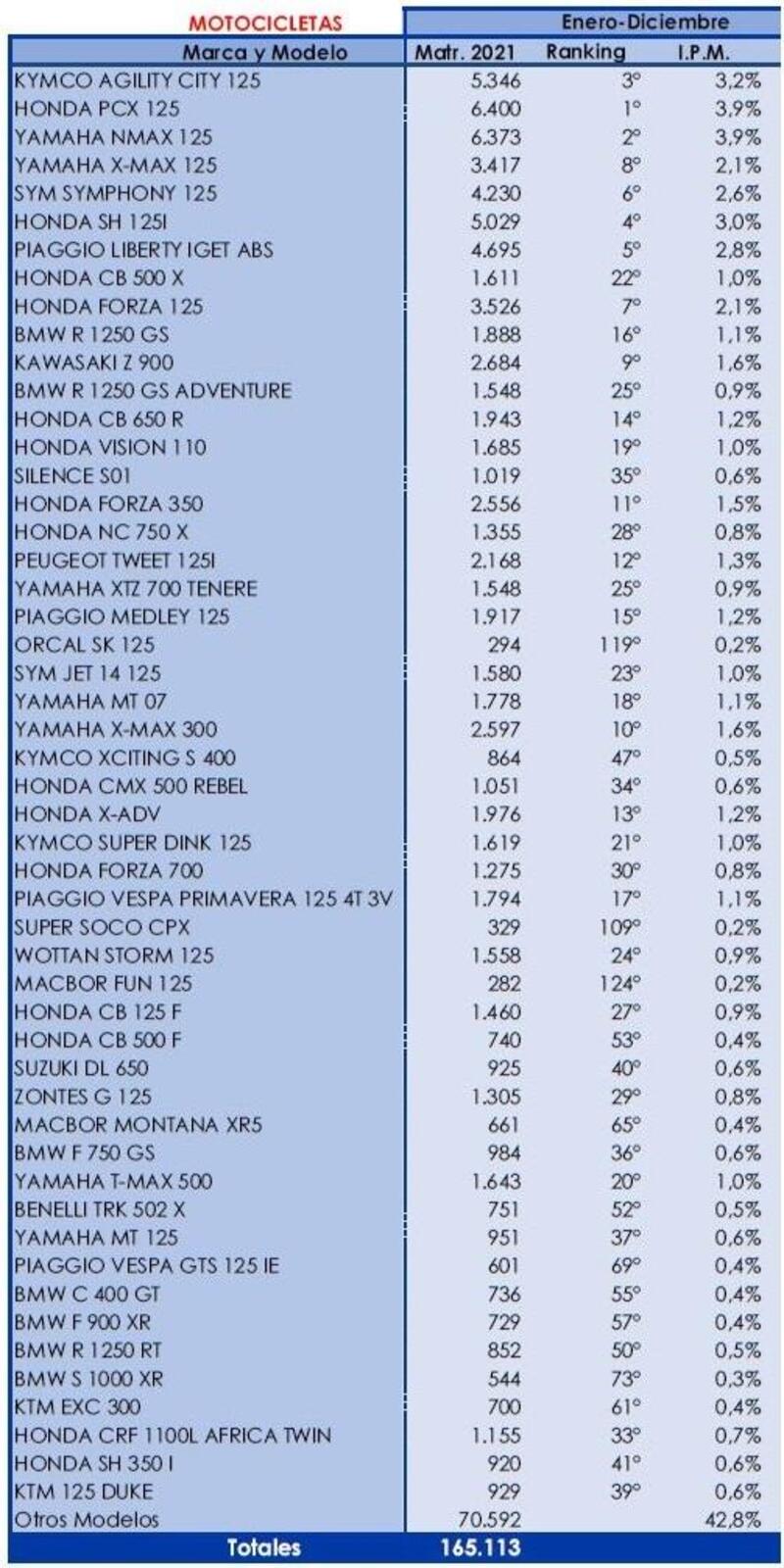 La cifra totale di 193.324 vendite, fra motocicli e ciclomotori, vale infatti un +5% rispetto al 2020 che fu condizionato più pesantemente dalla pandemia che non quanto ha pesato in Spagna nell'ultimo anno.