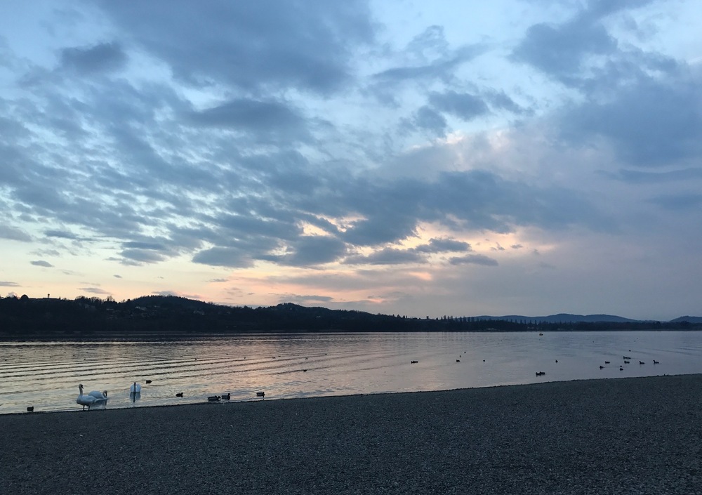 La SP 69, almeno fino all'altezza di Laveno, pare essere più una strada di montagna che una che costeggia il lago, mentre dall'insenatura di fronte a Intra fino a Luino si respira a pieni polmoni la bellezza del lungolago. L'asfalto, nonostante la pioggia, tiene bene e fa divertire tra acquazzoni e sprazzi di sole. La salita che da Luino conduce a Viconago, la cittadina italiana di fronte alla svizzera Ponte Tresa, sembra un piccolo passo di montagna, soprattutto oggi, con le nuvole basse e il freddo pungente che si infila sotto la tuta.