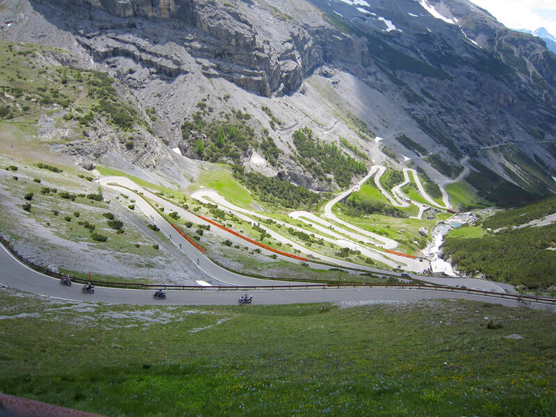 La tranquilla Santa Caterina Valfurva accoglie il motociclista con il suo ambiente da Parco Nazionale dello Stelvio, e con due personaggi dello sport di montagna che hanno fatto di questa cittadina un nome conosciuto nel mondo: Achille Compagnoni, primo scalatore del K2, e Deborah Compagnoni, campionessa di sci di discesa. I 12 chilometri della Provinciale 29 che portano a Bormio scorrono piacevoli e veloci, immersi nel verde, e servono a riprendere fiato prima di affrontare il passo per eccellenza, quello che i biker di tutte le nazioni ci invidiano: lo Stelvio. Non importa quante volte lo si possa percorrere, è sempre divertimento puro, soprattutto se si vive sia in salita, partendo da Bormio, sia in discesa procedendo in direzione Spondigna. I 48 tornanti che dalla vetta dello Stelvio, 2.758 metri d’altitudine, scendono in territorio alto-atesino sono un’occasione perfetta per ammirare il gruppo dell’Ortles, il Gran Zebrù e il Monte Cevedale.