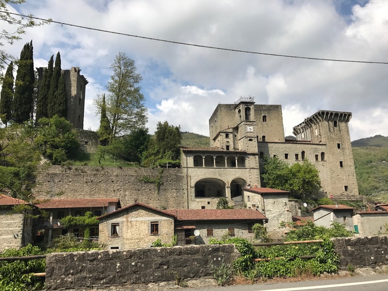 Giunti a Pieve Fosciana, con il tempo che torna a farsi nuvoloso, preferiamo procedere sulla Sp66 e scoprire la ricchezza paesaggistica della Garfagnana, racchiusa dalle Alpi Apuane e percorsa dal fiume Serchio, prima di affrontare uno dei tanti passi della zona che riportano in Emilia. Fino a Giuncugnano la moto sfreccia via tranquilla, facendoci apprezzare curve, asfalto e piccoli Comuni dall’immaginario di una volta. Le poche auto, i tanti chilometri da far assaporare alle nostre Metzeler e la sensazione di essere in un posto lontanissimo da Milano mi fanno sentire stranamente libera. L’azienda agricola biologica Il Grillo ci accoglie con un’ottima tagliata e tanti prodotti a Km zero e ci permette di riprendere fiato prima di puntare alla meta successiva ormai in Lunigiana: Fivizzano. Qui, dopo aver ammirato la fortezza medievale di Verrucola (foto sotto), che si trova appena oltre Fivizzano in direzione Passo del Cerreto, cambiamo completamente itinerario e invece di continuare sulla Strada Statale 63 ci addentriamo ancora più nella Lunigiana.