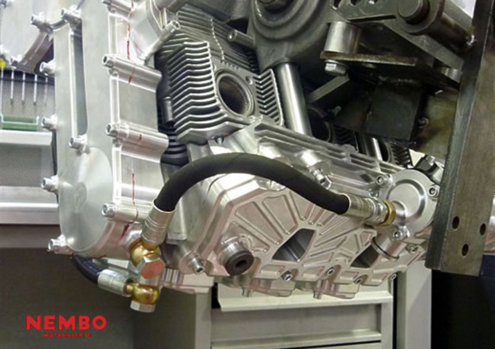Insomma, per prima cosa, dovevo costruire un motore aspirato invertito, naturalmente omologabile Euro 3, con precise specifiche tecniche ed estetiche. Così ho trovato un interlocutore ideale nel bravissimo quanto apprezzato ingegner Giovanni Mariani (la cui sede operativa si trova a Fizzonasco, alle porte di Milano, ndr). Giovanni, assieme al suo giovane e valente staff di progettisti, composto dagli ottimi ingegneri Fabio Falcone, Alessandro Sobacchi e Marco Fasani, ha sviluppato per la Nembo Motociclette un motore molto potente ed estremamente compatto, concretizzando esattamente quanto desideravo. Sandro Carò, meccanico-gentleman (dove il limite tra meccanico e ingegnere inizia davvero a diventare effimero) si è personalmente preso in carico della fase di industrializzazione del motore stesso, peraltro con consigli molto preziosi ».