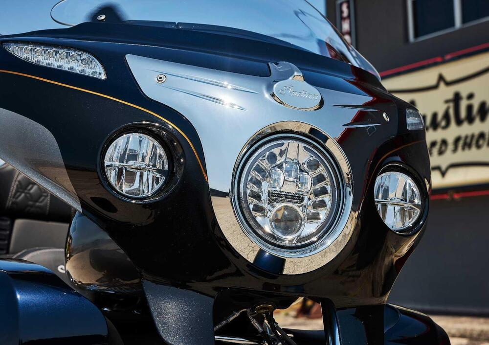Tra il 1914 e il 1918, il fondatore della Indian Motorcycle Company, George Hendee, aveva ampliato gli impianti di produzione di Indian Motorcycle a Springfield, creando il più moderno stabilimento di produzione di motociclette al mondo. Oltre alla famosa vernice Indian Motorcycle Red, che debuttò nel 1904, l'Indian Motorcycle Springfield Blue era l'altro colore iconico del marchio di quell'epoca. In onore di quel passato, la nuova Roadmaster Elite sfoggia uno schema di verniciatura tri-tono, con finiture candy. Il colore Indian Motorcycle Springfield Blue Candy e il Black Candy Fade over Silver sono completati dai loghi del serbatoio Headdress. La livrea è completata dalle grafiche Elite e dalle strisce dorate dipinte a mano. Per completare l'opera di personalizzazione, ogni Roadmaster Elite è dotata di badge Elite serializzato e numerato individualmente, a ulteriore testimonianza dell'esclusività della moto