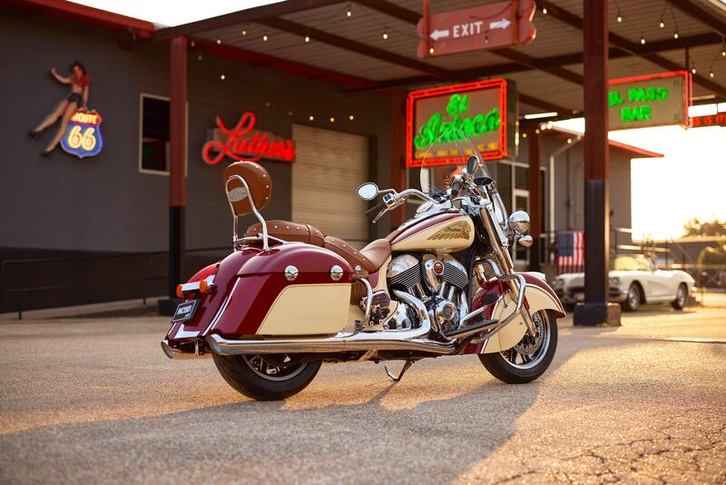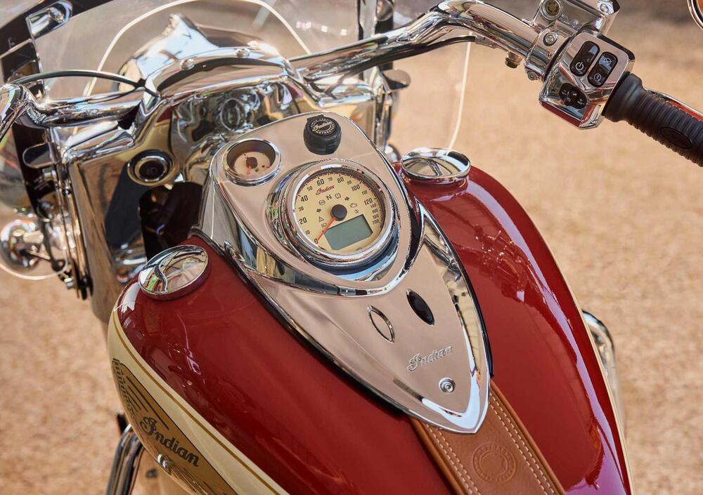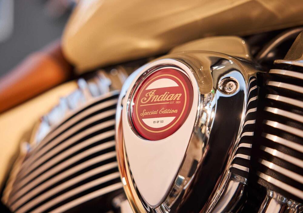 La Indian Springfield Special Edition sfoggia una verniciatura bicolore con color crema avorio e il caratteristico rosso Indian Motorcycle 1904 del marchio, con i loghi Anniversary Gold Metallic che adornano il serbatoio e le strisce Anniversary Gold Metallic su tutta la carrozzeria. La sella in vera pelle marrone è stata progettata pensando al comfort e fa il paio con i parafango con logo a forma di copricapo illuminato sul lato anteriore. Non mancano le finiture cromate, e inotre ogni Indian Springfield Special Edition presenta una targhetta del motore numerata individualmente per distinguere ulteriormente la sua esclusività.