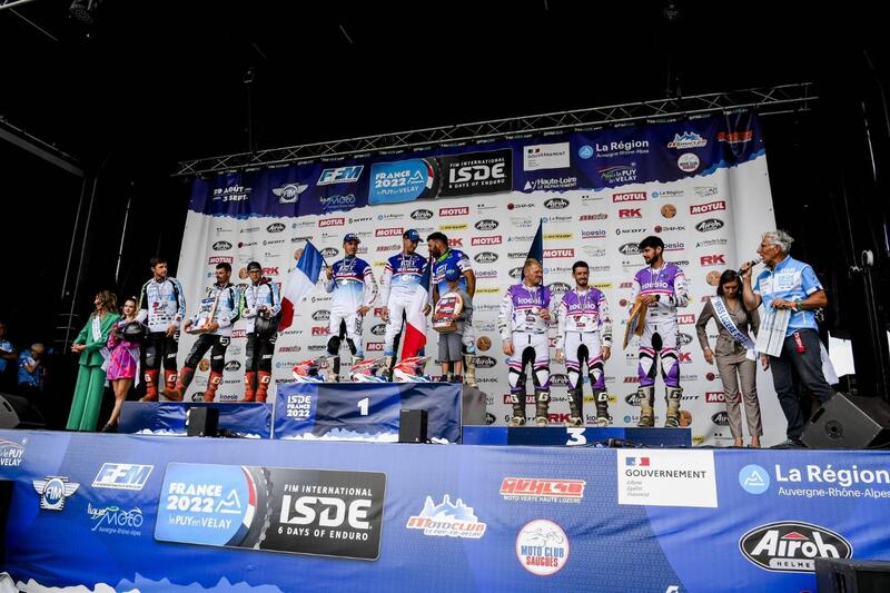 Le Puy-en-Velay, Alta Loira, Francia, 3 Settembre. Sesto giorno, è l’ultimo giorno. Il Motocross chiude la 96ma Edizione della 6 Giorni Internazionale di Enduro. Francia 2022 sarà ricordata innanzitutto per la durezza della Gara. Sei giorni di impegno asfissiante, difficoltà e ritmo senza tregua. Una vera Olimpiade dell’Enduro. Grande festa e competizione senza compromessi. È un fatto in un certo senso storico, i francesi sono riusciti a far quadrare il cerchio dell’evento di altissimo livello tecnico e agonistico senza per questo rinunciare alla componente del party, dell’occasione per pro e amatori. È una 6 Giorni che ha tenuto per sei lunghi giorni sotto scacco i Campioni e offerto l’occasione indimenticabile a un oceano di appassionati. Sì, 6 Giorni indimenticabile… e da non dimenticare.