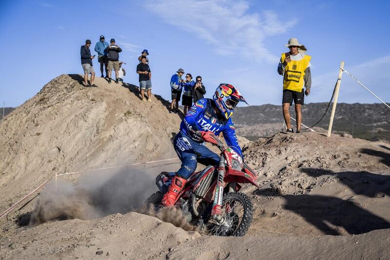 San Juan, Argentina, 11 Novembre. Giorno 4. Sceneggiatura principale perfettamente rispettata. Josep Garcia, KTM, vince un’altra giornata di gara e rafforza la propria candidatura a protagonista principale assoluto della 6 Giorni Internazionale di Enduro 2023. Non è proprio così. A voler essere precisi, sul set di San Juan gli attori protagonisti sono due, e costarring è Andrea Verona, GasGas. Se non ci fosse questo duello al sole argentino (accecante, asfissiante) l’evento… pardon, il film vivrebbe soprattutto sulla cavalcata dei Bonanza americani. È la Squadra degli USA, Taylor, Girroir e Oliveira nei primi 6, che si aggiudica la quarta giornata consecutiva (su 4, evidentemente) e procede compatta e micidiale sulla marcia verso la conquista del Trofeo. È chiaro che sulla trama grava pesantemente (6 minuti di ritardo per rimettere a posto la catena) lo strappo della pellicola per la sfortunata vicenda italiana del primo giorno, l’inconveniente patito da Bernardini, ma diremmo che è tempo di scordare l’acqua passata e guardare avanti. Che non è affatto male.
