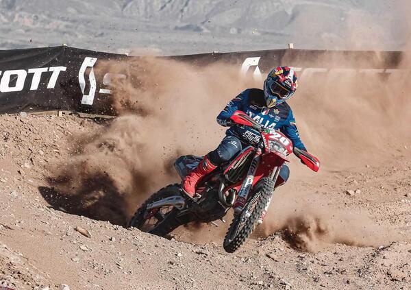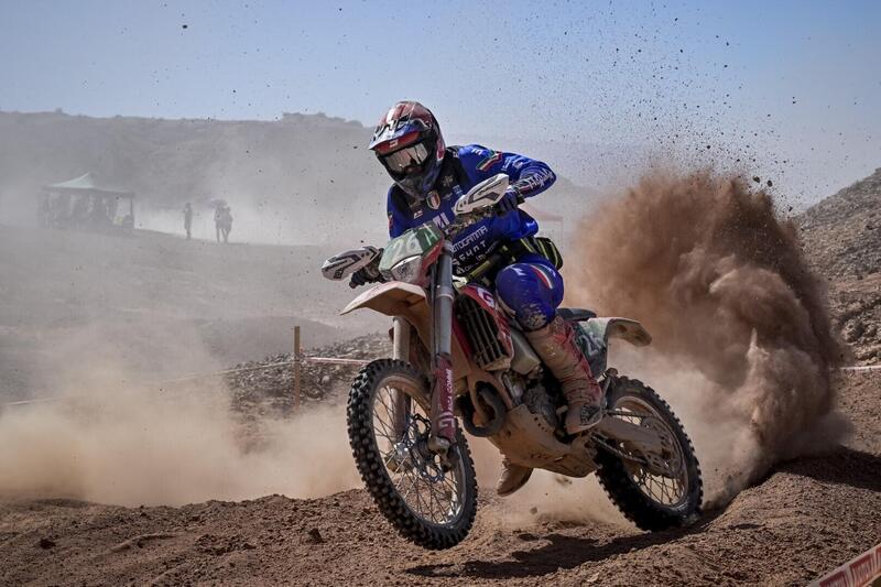 Vogliamo cambiare discorso, e finalmente completarlo? Sì, certo. E allora si dovrebbe dire che né gli USA né la Francia, i vincitori rispettivamente dei Trofei Mondiale e Junior, hanno piazzato un vincitore nelle rispettive classifiche individuali assolute di Trofeo. E beccatevi questa! Sono due i Piloti, infatti, cugini di Marca e fuoriclasse straordinari, che hanno scandito come un metronomo il quotidiano dominio sugli oltre 350 avversari della “popolazione 6 Giorni”. Sono Josep Garcia, KTM, e Andrea Verona, GasGas. Ha vinto lo spagnolo, l’assoluta della 6 Giorni e ogni giorno di gara tranne il secondo e l’ultimo (come abbiamo detto il Motocross Aser finale è andato a Dante Oliveira), ma l’Italiano è stato perennemente la sua ombra, ogni giorno più lesto ad andare in pressione, ogni giorno gomito a gomito con l’amico avversario, una volta davanti (il secondo giorno di gara). Alla 6 giorni il risultato di Squadra, di Nazione, è di gran lunga il leit motiv del romanzo, e solo dopo ci si accorge concretamente che individualità come queste sono di fatto la colonna sonora portante dell’intero evento. Di conseguenza, e come “accessorio”, Garcia vince la E1 e Verona la E2. Loic Larrieu è il vincitore della E3, Brandy Richards della Femminile.