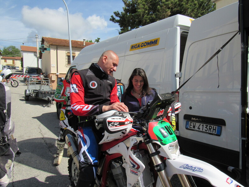 I mezzi di assistenza dei team più importanti hanno, di stagione in stagione, dimensioni sempre più considerevoli. Ad Aielli il top è stato raggiunto dal Team Solaris Husqvarna che si è presentato con un bilico gigantesco: di quelli che usano nel mondiale di Motocross. Subito qualche difficoltà ad arrivare nel punto convenuto e l’impossibilità di predisporre tutta l’hospitality nelle microstrade del paese. Il problema più grosso, però, al momento della partenza per tornare a casa. Solo grazie all’abilità dell’autista che ha percorso in retromarcia tutta la strada dell’andata tra macchine parcheggiate, spigoli di case e cartelli stradali è finalmente riuscito ad invertire il senso di marcia per prendere la via di casa. Se ne è andato strombazzando tra gli applausi dei presenti.