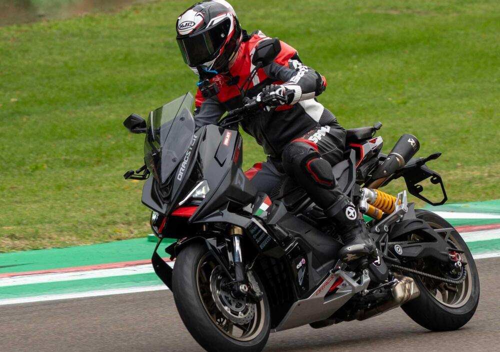 La posizione di guida, con sella 815 mm di altezza regala una posizione di guida comoda, ma non sportiva, anche se, tra le curve di Imola la voglia di piegare, di sporgersi, ovviamente non è mancata. Tre i giri che abbiamo avuto a disposizione, compreso quello di lancio e quello di rientro, per cui uno completo. Il sottoscritto si è divertito molto ed è anche andato lungo al secondo passaggio della "Gresini", non ci stavo, ho staccato tardi per le mie capacità e ho tagliato sull'erba, poco male!