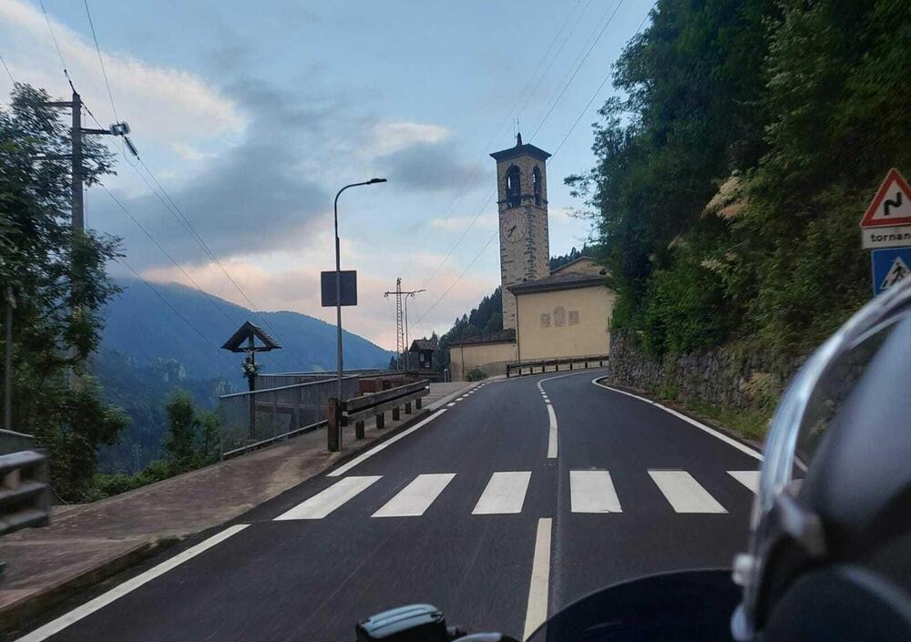 Mi risveglio, do una pulita alla visiera del casco, mi lavo la faccia e mi rivesto, pronto a partire con una gran voglia di fare strada. Si punta verso sud, sul Lago d’Iseo. Alle mie spalle verso nord il cielo comincia a schiarirsi e le temperature salgono. Rimuovo la membrana termica del completo: il sole è tornato e a breve comincerà a fare sul serio.