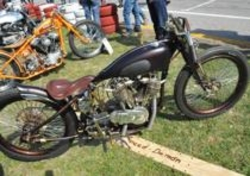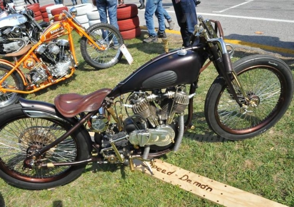 Questo “gioiellino”, come lo ha definito Matteo di Abnormal Cycles, uno dei suoi artefici, monta un raro motore JD da 1.200 cc del 1919 incastonato in un telaio VL del 1931. Una celebrazione dunque della storia Harley-Davidson, interpretata in perfetto stile vintage, con abbondante utilizzo di componenti e materiali rari e pregiati e resa irripetibile dalla presenza di numerosi elementi di realizzazione artigianale. Nel complesso ci sono voluti 8 mesi per trasformare l’idea in realtà; il valore della Speed demon (il demone della velocità, rappresentato nel fregio da tappo della benzina anni 30 che sormonta la ruota anteriore) è stimato in oltre 50.000 Euro.