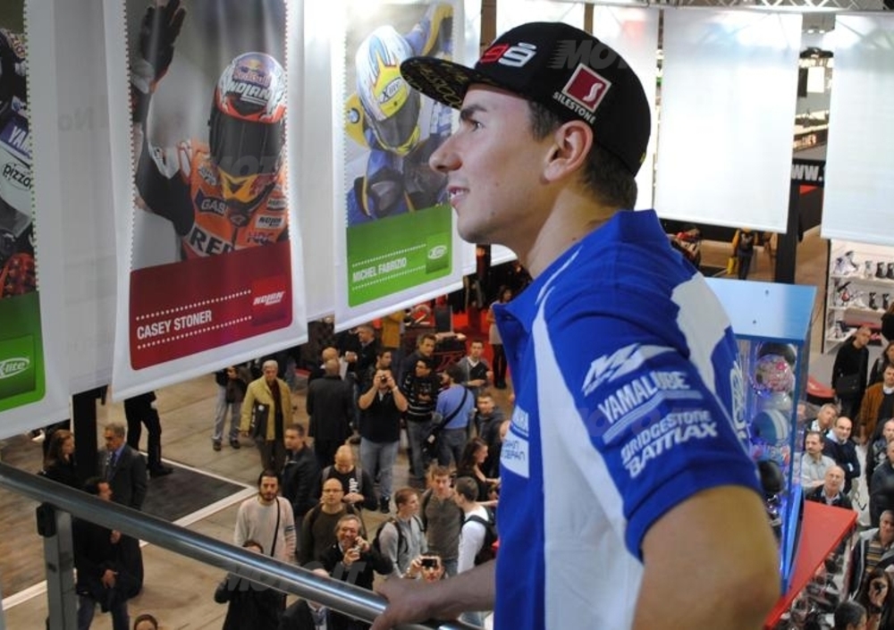 Fresco di ritorno dai test MotoGP in Spagna, Jorge Lorenzo è oggi in visita al Salone di Milano.