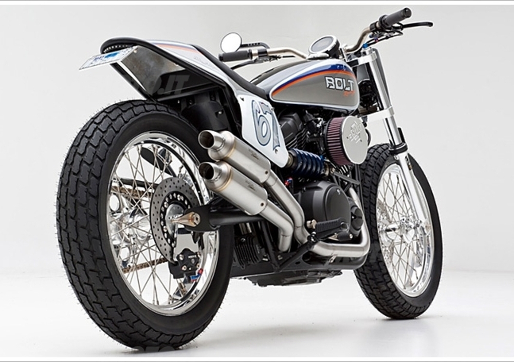 Quella che vi proponiamo oggi è l'interpretazione di Jeff Palhegyi (JPD Customs) che come del resto Roland Sands ha deciso di rivisitare in chiave dirt-track la XV950 ponendo l'accento sulla componente sportiva. Un progetto inizialmente semplice, dal momento che la prima idea era quella di limitarsi a montare sovrastrutture e cerchi. Una volta però capito come geometrie e distribuzione dei pesi fossero incompatibili con una simile interpretazione (cannotto di sterzo troppo alto e forcellone troppo lungo) Jeff ha pensato bene di modificare il telaio rivisitandolo completamente per modificare la distribuzione dei pesi.