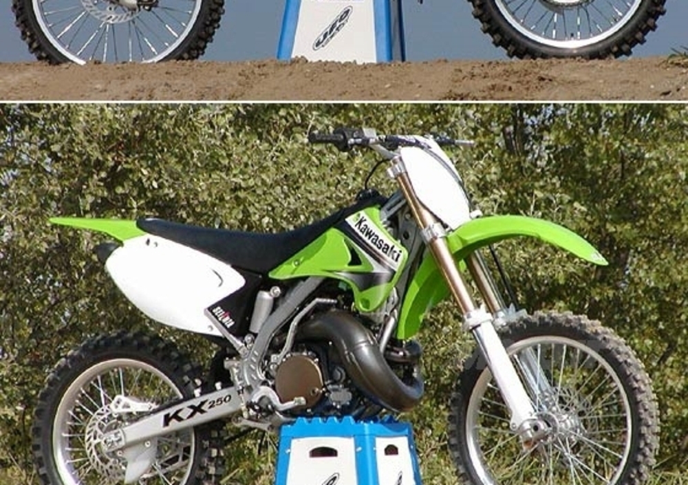 Il lavoro di alleggerimento svolto dalla Kawasaki ha riguardato tutte le componenti delle due KX che rispetto ai modelli precedenti hanno fatto un notevole passo in avanti sotto tutti gli aspetti.