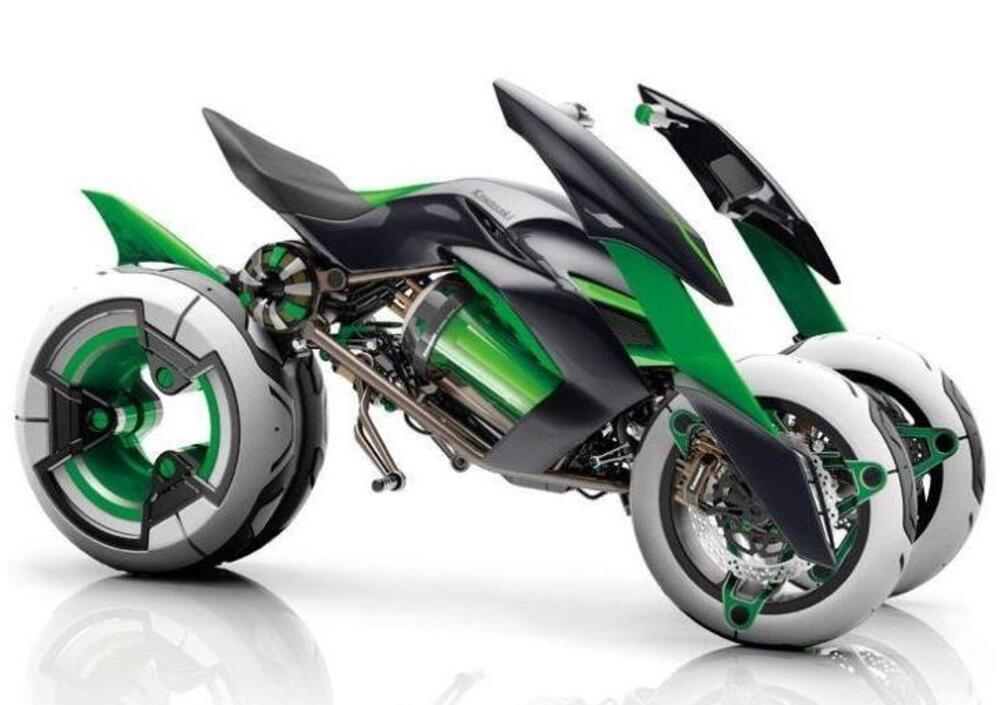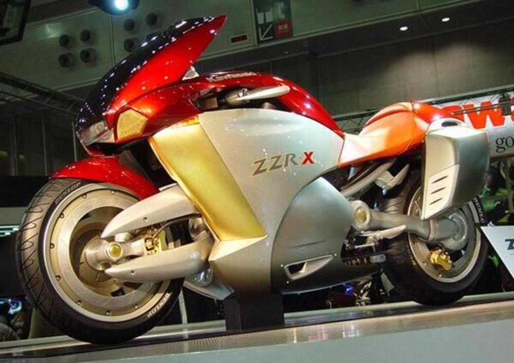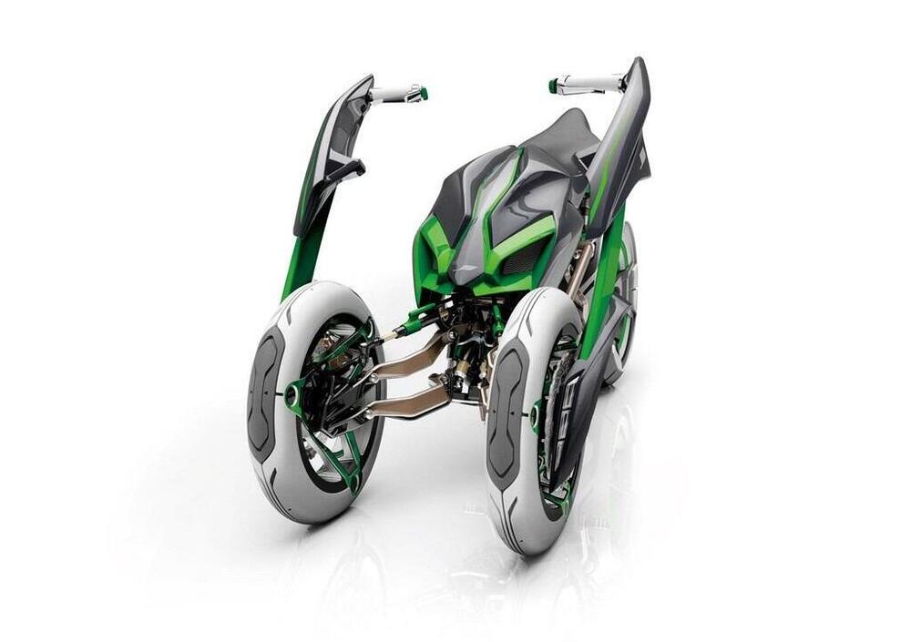Va in ogni caso ricordato che almeno in un paio di occasioni Kawasaki ha mostrato dei concept senza la forcella: citiamo la ZZR-X esposta al Tokyo Motor Show del 2003, e la moto a tre ruote elettrica Concept J esposta sempre a Tokyo, ma dieci anni dopo (qui sotto).