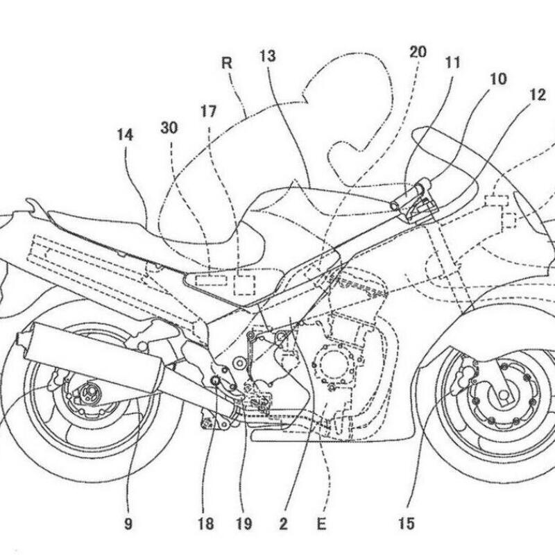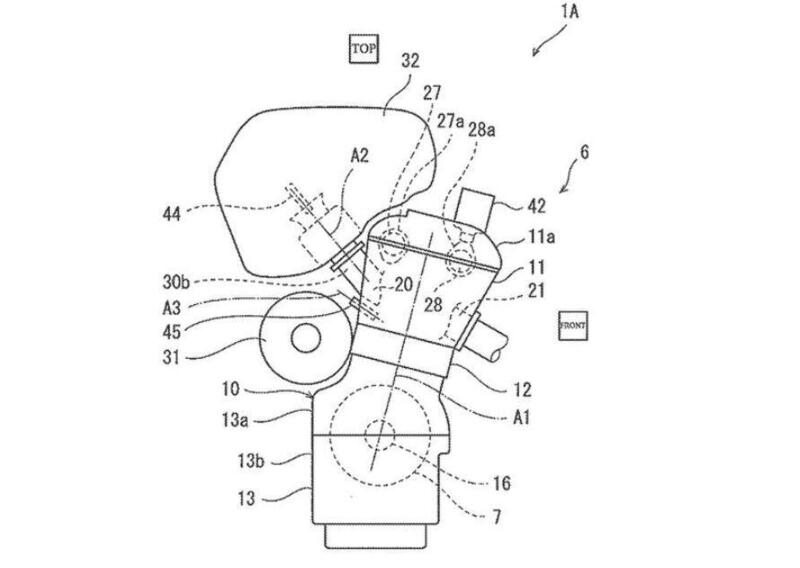 Arrivano dall'ufficio dei brevetti giapponesi i disegni di un motore Kawasaki innovativo. Si tratta di un quattro cilindri a due tempi, dotato di distribuzione bialbero e quattro valvole per cilindro, di compressore e di fasatura crossplane.