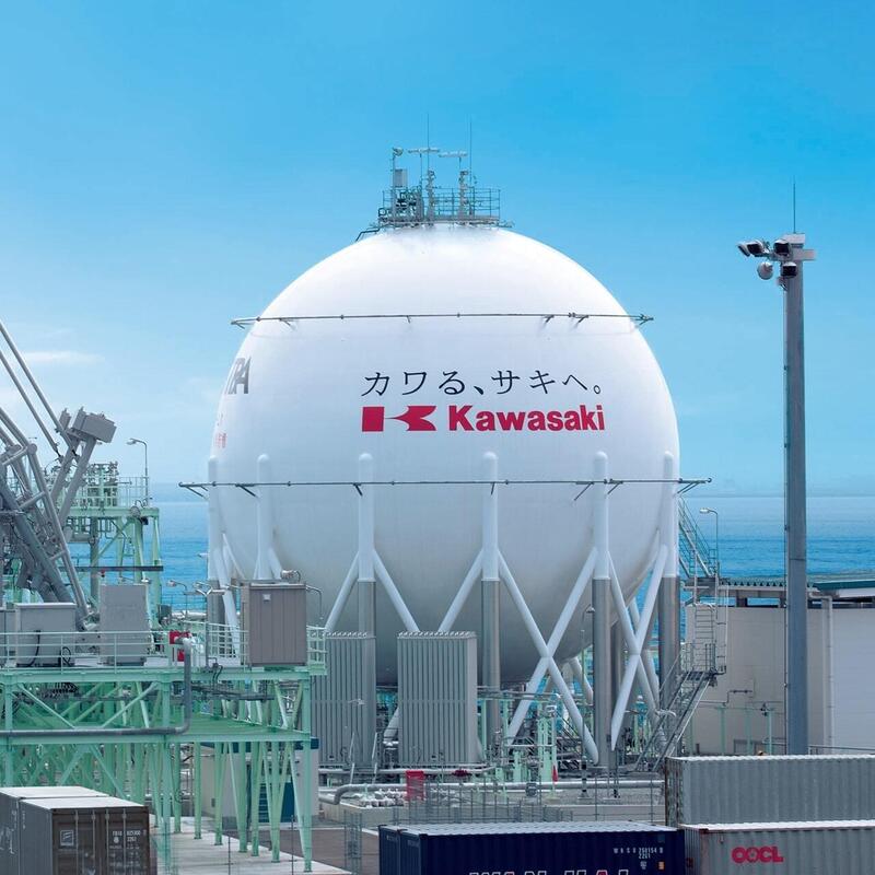Kawasaki punta molto sul questo carburante e sta lavorando allo sviluppo e alla commercializzazione della tecnologia necessaria da monte a valle della filiera per l'uso dell'idrogeno che può essere trasportato in modo relativamente facile se portato a una temperatura di -253 °C e il suo volume conseguentemente ridotto a 1/800. Sviluppi di queste tecnologie posso avere importanti ricadute anche nel mondo delle celle a combustibile ma anche nel campo dei futuri motori endotermici alimentati a idrogeno, di cui già gira ad Akashi almeno un prototipo. L'impegno, tra l'altro, è ribadito dalla presenza di una società (Japan Hydrogen Energy Co) nell'universo Kawasaki che si occupa di realizzare in Giappone un progetto dimostrativo della catena di approvvigionamento di idrogeno liquefatto, ma non dobbiamo nemmeno dimenticare l'esperienza già accumulata da Kawasaki nel trasporto di gas liquefatti e nel loro stoccaggio.
