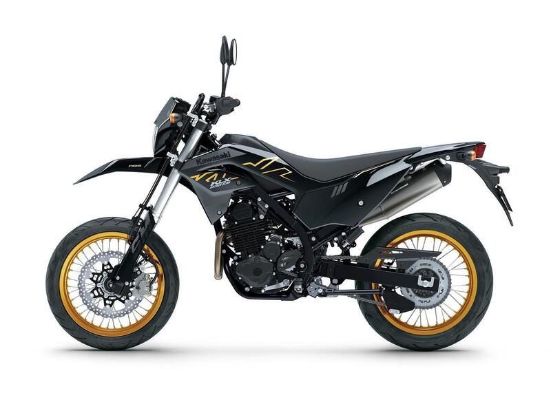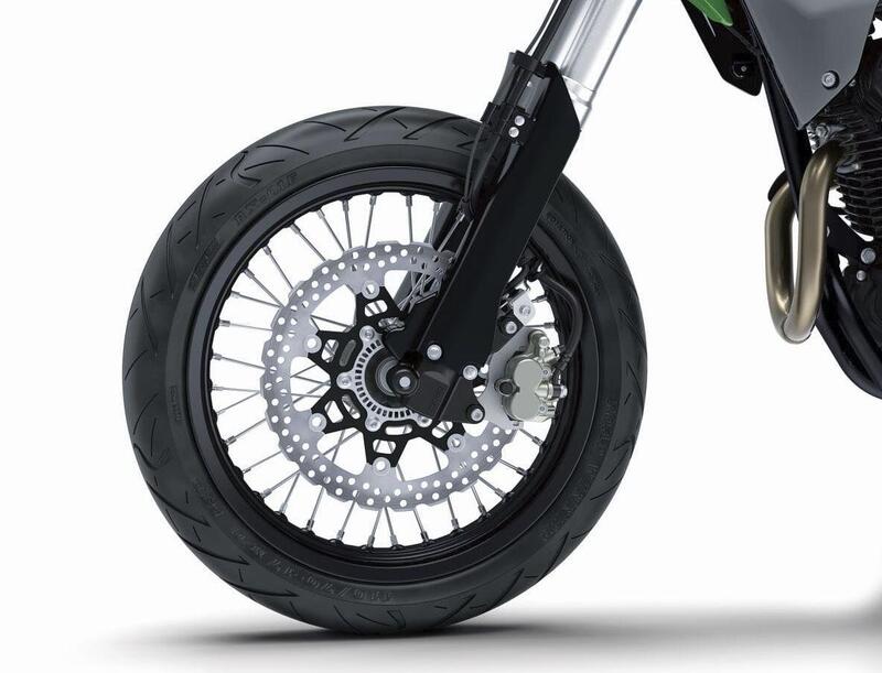 Basata sull'enduro stradale KLX230, questa versione ha montati i cerchi a raggi da 17 pollici davanti e dietro, mentre compare una inedita forcella rovesciata con steli da 37 mm.