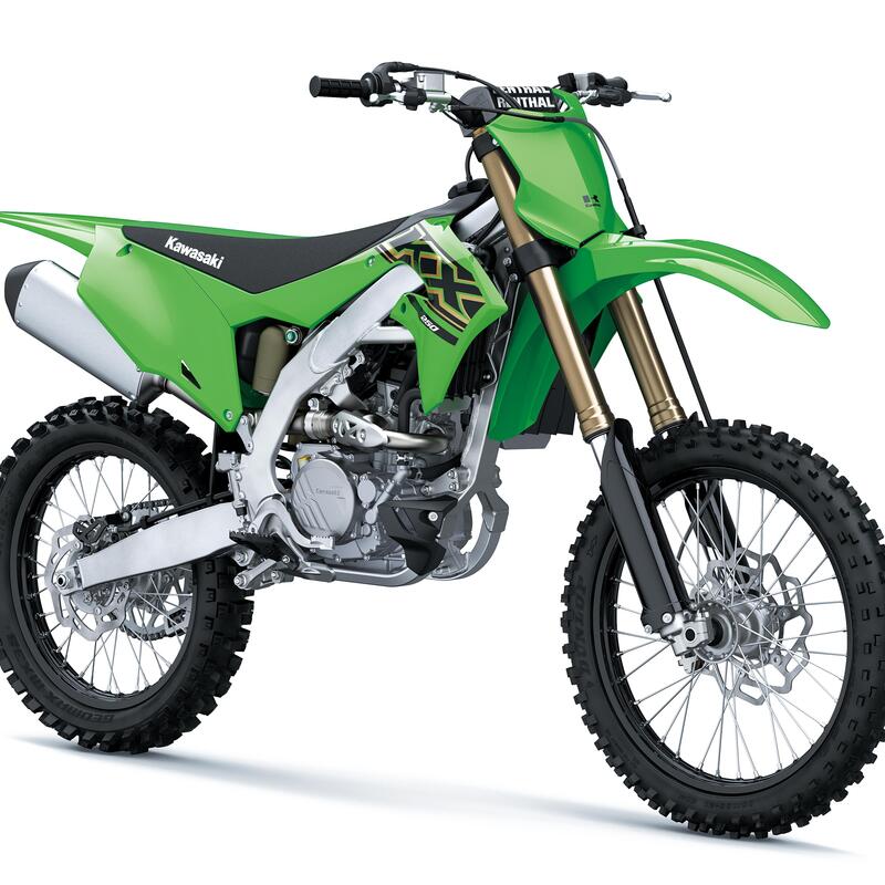 Il motore di 449 cc della maggiore KX ha l'avviamento elettrico (con leggera batteria agli ioni di litio) e le sospensioni Showa con la tecnologia A-Kit: forcella rovesciata da 49 mm con pistoni di grande diametro e nuovo collegamento della sospensione posteriore Uni-Trak.
