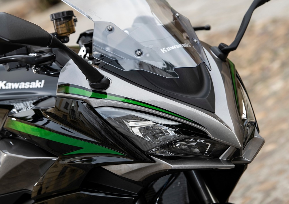 L'estetica è molto simile alla versione 2017 e, soprattutto nel taglio del cupolino, non mancano alcuni richiami all'iper sportiva ZX-10R. A cambiare è la carenatura, con nuovi pannelli laterali attorno a motore e radiatore che si sono rivelati utili anche nell'offrire nuove combinazioni cromatiche.