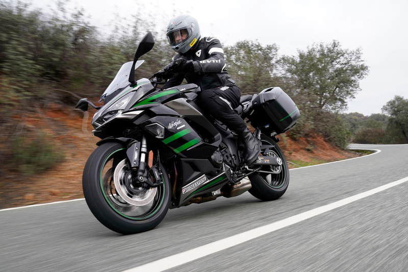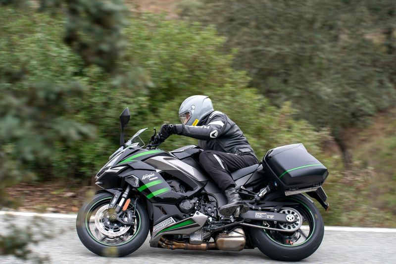 La Ninja 1000 SX non ha un avantreno particolarmente veloce in inserimento eppure non difetta di agilità nemmeno nel misto più stretto. Complici le ottime Bridgestone S22 sfodera un comportamento molto lineare fra le curve, con un avantreno preciso e neutro all'apertura e alla chiusura dell'acceleratore. Ce n'è insomma abbastanza per divertirsi nel misto di media velocità: accelerazione, frenata, appoggio in piega, trazione in uscita dalle curve e il tutto con una potenza importante.