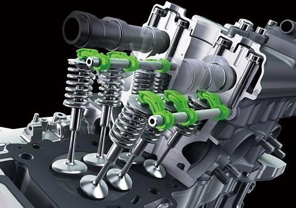 Il motore è quello che riceve le modifiche più importanti, con l'arrivo di una testata ridisegnata che vanta un nuovo comando della distribuzione, alleggerito del 20%, basato su bilancieri a dito invece dei precedenti bicchierini. Il risultato sono camere di scoppio più compatte, e un regime massimo più elevato. L'aggiornamento, montato su tutti e tre gli allestimenti (ZX-10R, ZX-10RR e ZX-10R SE) viene evidenziato da un nuovo coperchio distribuzione verniciato in rosso.