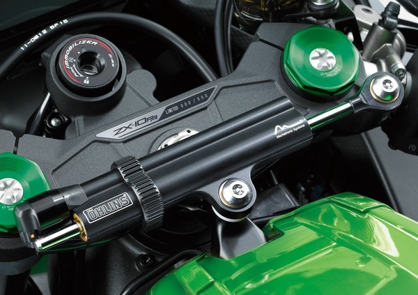 Sulla versione ZX-10R SE (che abbiamo provato di recente nel nostro confronto tecnologico di sospensioni) gli aggiornamenti di motore si affiancano alle migliorie già patrimonio della Special Edition, ovvero cerchi Marchesini forgiati e impianto frenante con pinze Brembo monoblocco, nonché naturalmente sospensioni semiattive Showa aggiornate nella logica di funzionamento per adattarsi alla diversa risposta del motore.