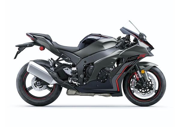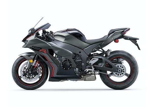 La novità è unicamente cromatica e vede a fianco della confermata tinta Lime Green-Ebony-Pearl Blizzard White (la replica KRT insomma) una nuova tinta bicolore Metallic Matte Graphenesteel Gray-Metallic Diablo Black (metallizzato opaco grigio e nero lucido) con motivi grafici in rosso e profili cerchi ruota sempre in rosso. Nessuna variazione invece per la ZX-10RR, qui sotto.