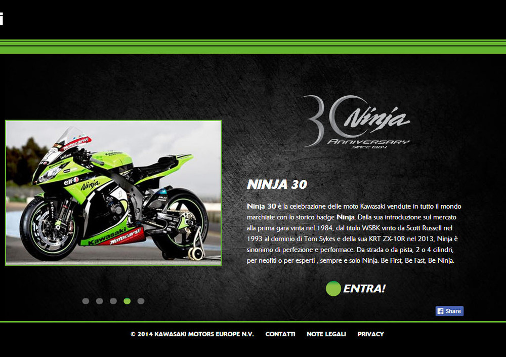 A proposito del lancio di Ninja30.com, Shigemi Tanaka -Kawasaki Motors Europe Director, incoraggia i fan ad accedere al sito e a farsi coinvolgere dal mondo Ninja: "In Kawasaki siamo comprensibilmente orgogliosi della storia trentennale della Ninja. Il mini-sito e tutte le altre iniziative in corso sono un modo per ringraziare tutti i nostri fan, estimatori e possessori di questi modelli".