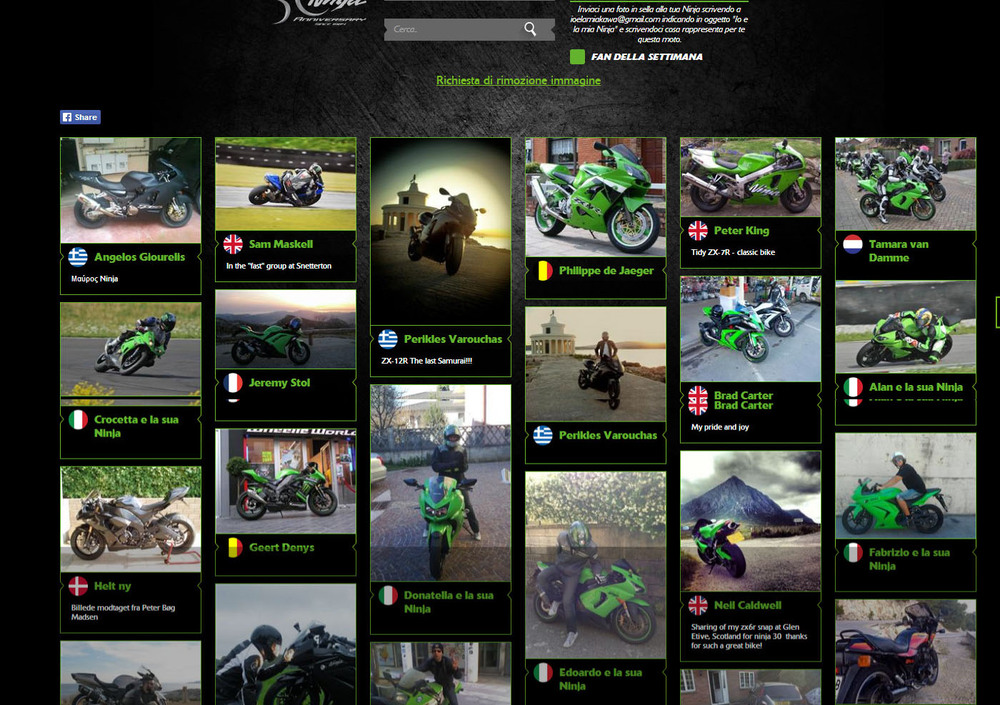 Dopo il successo riscosso degli album dedicati sulle pagine Facebook di tutte le filiali Kawasaki, nel mini-sito trovano ora spazio anche i fan e i possessori di Ninja di tutta Europa, con una gallery dedicata e l’elezione del fan della settimana.