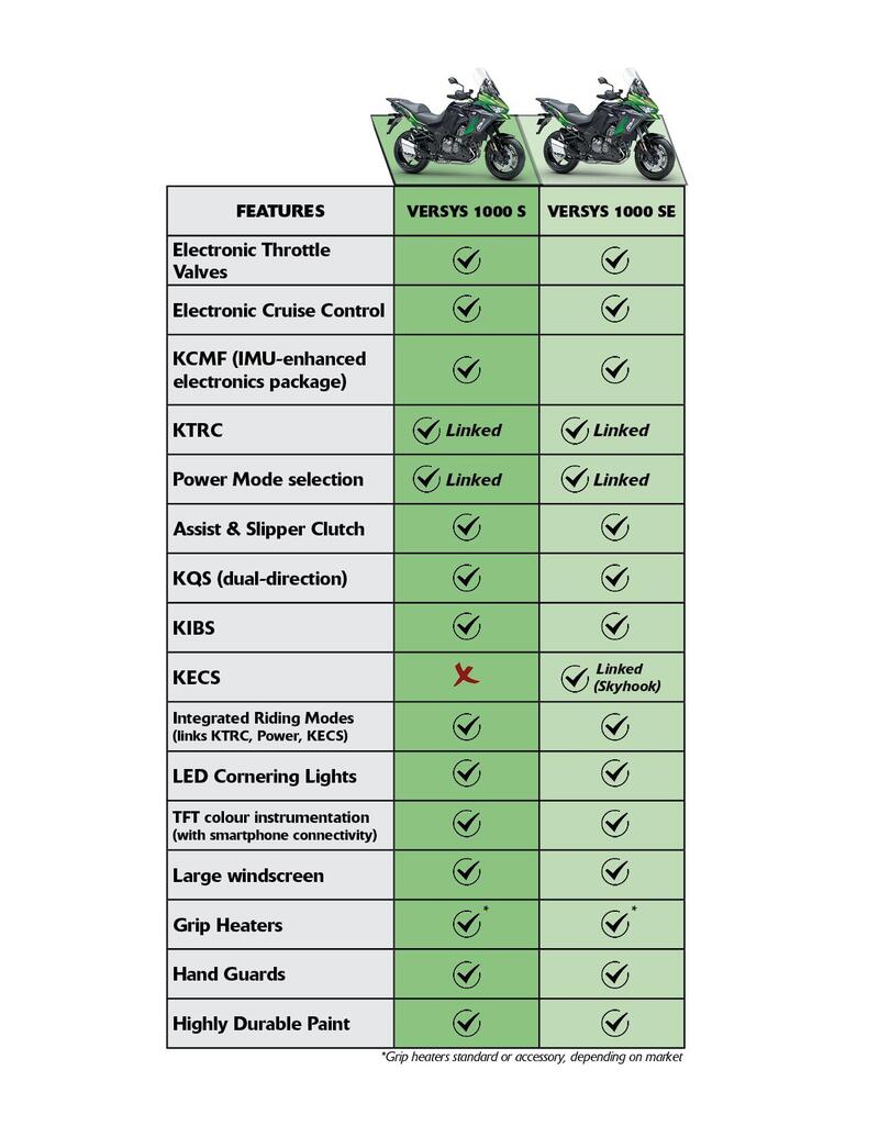 Versione S ed SE condividono i fari full LED che include le cornering lights, la strumentazione TFT con connettività Bluetooth allo smartphone tramite l'app Kawasaki Rideology e infine un ampio parabrezza regolabile in altezza e paramani protettivi.
