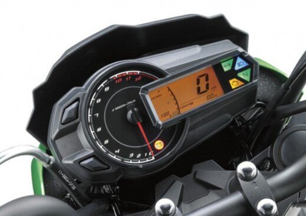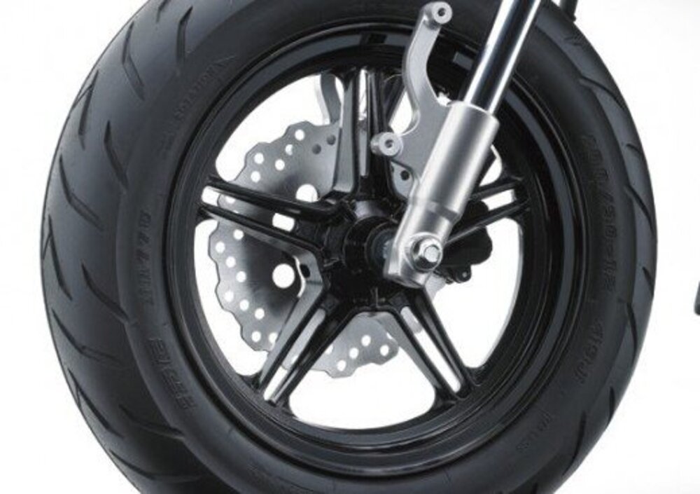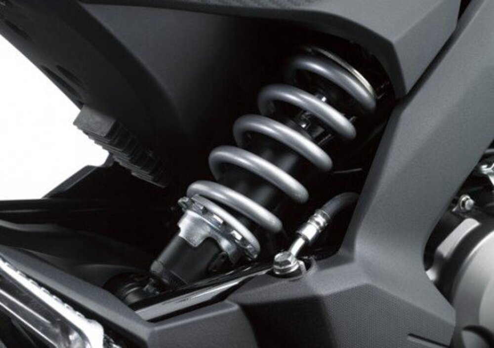 I cerchi da 12” calzano pneumatici da 100/90 e 120/70 rispettivamente per avantreno e retrotreno, con un freno a disco da 200mm all’anteriore ed uno da 184 al posteriore, entrambi con pinze a singolo pistoncino. Le sospensioni sono una forcella rovesciata da 30mm ed un monoammortizzatore disassato come ormai da buona tradizione Kawasaki.
