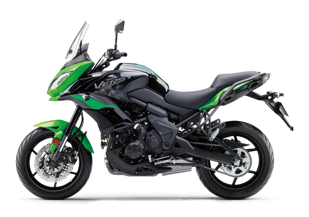 La crossover Versys 650 sarà disponibile nelle colorazioni Candy Lime Green / Metallic Spark Black, Pearl Blizzard White / Metallic Spark Black e Metallic Moondust Gray / Metallic Spark Black.