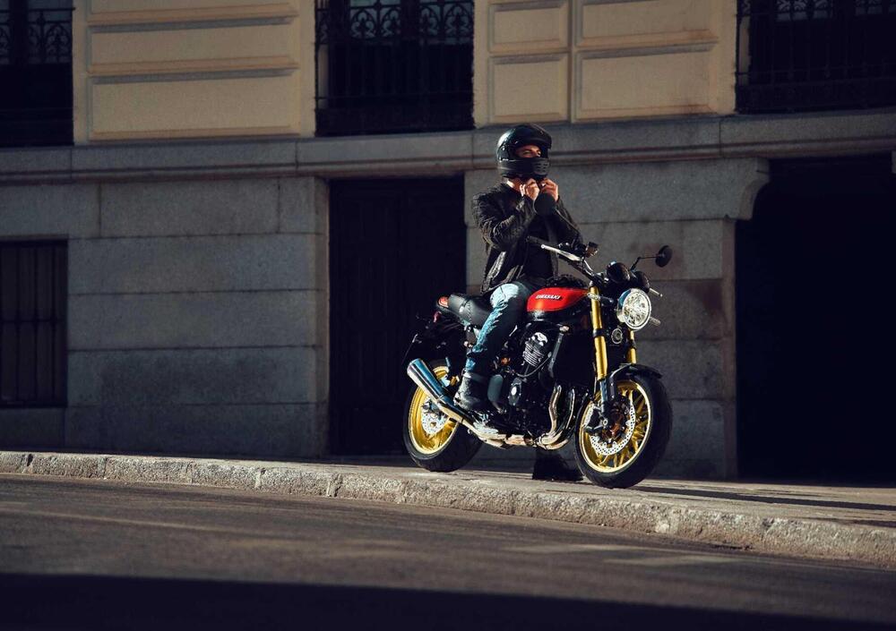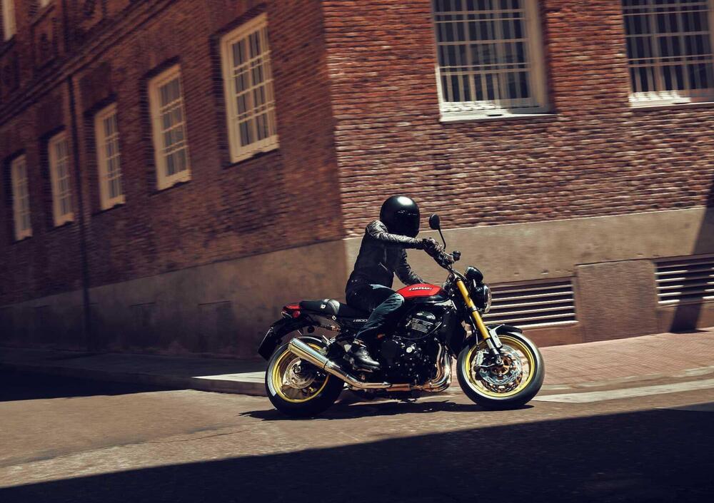 La gamma si articola su tre livelli. La Z900RS standard arriva nella suggestiva colorazione Candy Tone Red, richiamo diretto alla livrea Z1B del 1975. La Z900RS Black Ball Edition propone una finitura total black in Ebony, con emblemi stile Fireball per un look più aggressivo.