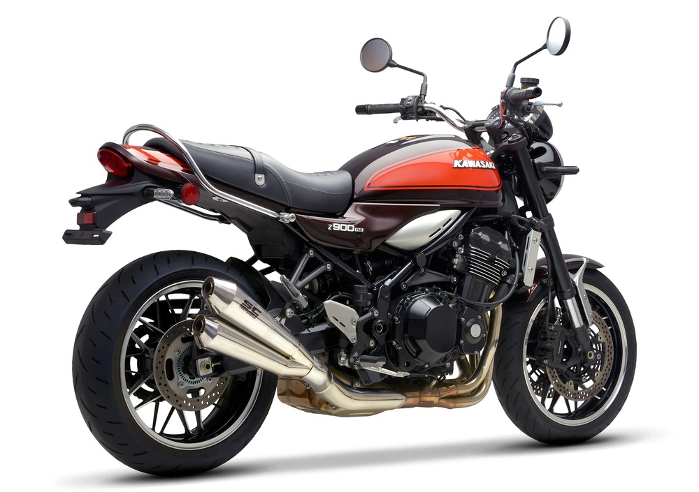 Si tratta di un kit estetico che sottolinea il richiamo agli anni Settanta e a all’iconica Z1 900, e che comprende il nuovissimo scarico SC Project “Testanera”: un doppio silenziatore conico con controcono di uscita lucidato a specchio ed ispirato alla coppia di scarichi presenti sulla Z1 900 del 1972. Ci sono inoltre loghi vintage Kawasaki sul serbatoio, e il classico maniglione cromato per il passeggero. I loghi per il serbatoio non sono però disponibili per la Z900RS in colorazione matte covert khaki (verde opaco) e l’offerta non è cumulabile con altre iniziative commerciali in corso.