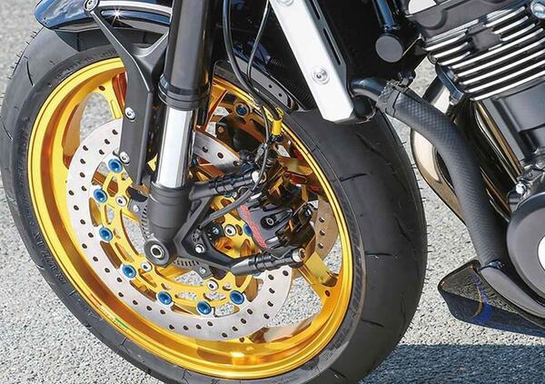 La verniciatura riprende i motivi grafici delle Kawasaki del passato ma con una cromia differente che mette in risalto i cerchi in alluminio forgiato Marchesini color oro 3x17 e 6x17 con gomma posteriore da 200 mm. La sella ha un nuovo rivestimento in pelle traforata e liscia con impunture azzurre.