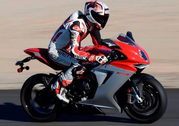 Al Chuckwalla Valley Raceway, infatti, erano entrambi ospiti di MV U.S.A., con Reeves che non s’è fatto scappare l’occasione di mettere il ginocchio a terra in sella ad una F3 e di provare la Superveloce, verso la quale ha anche speso parole di apprezzamento.