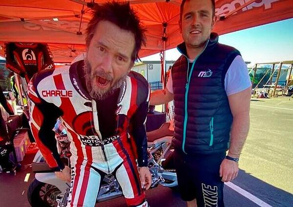 Uno è un campione e nelle sue vene scorre il sangue blu del motociclismo più estremo, l’altro è uno degli attori di maggior fama di Hollywood e nutre una passione per le due ruote che non solo l’ha portato a collezionare moto, ma anche a fondare il suo marchio. E, adesso, si sono pure incontrati. Come se non bastasse anche tra i cordoli, in un circuito della California. Michael Dunlop e Keanu Reeves, non ci sono dubbi, sono una strana coppia e vederli insieme sull’asfalto fa un certo effetto. Ciliegina sulla torta? La moto italiana.