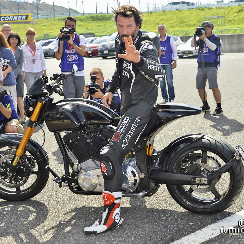 Come pure alla sequenza d'azione in sella ad una Yamaha MT 09 nel capitolo tre della saga di John Wick (mentre la 998 “verde Matrix” usata nel capitolo due di Matrix figura nella sua collezione personale), fino all'avvistamento al Mugello nel 2017 in sella ad una Panigale V2 e alle sue presenze nei box della MotoGp, a turno con Rossi, Dovizioso e Márquez, Reeves può tranquillamente essere definito un appassionato proprio come la maggior parte di noi: lo stesso incontro con il suo socio Hollinger è scaturito dalla voglia di qualche “ritocco” per la propria Harley-Davidson, e tra l'altro ce lo ricordiamo in giro per EICMA un paio d'anni fa senza troppi filtri tra sé e il pubblico.