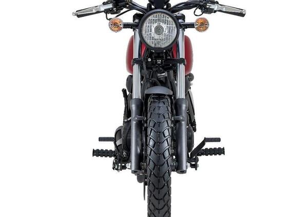 La ciclistica conta sul telaio a doppia culla in acciaio, con forcella teleidraulica, coppia di ammortizzatori regolabili nel precarico molla, ruote integrali in lega da 17 e 15 pollici (con gomme strette ma panciute: 90/90 e 130/90) e freni a disco singolo da 280 e 240 mm con sistema combinato invece che ABS.